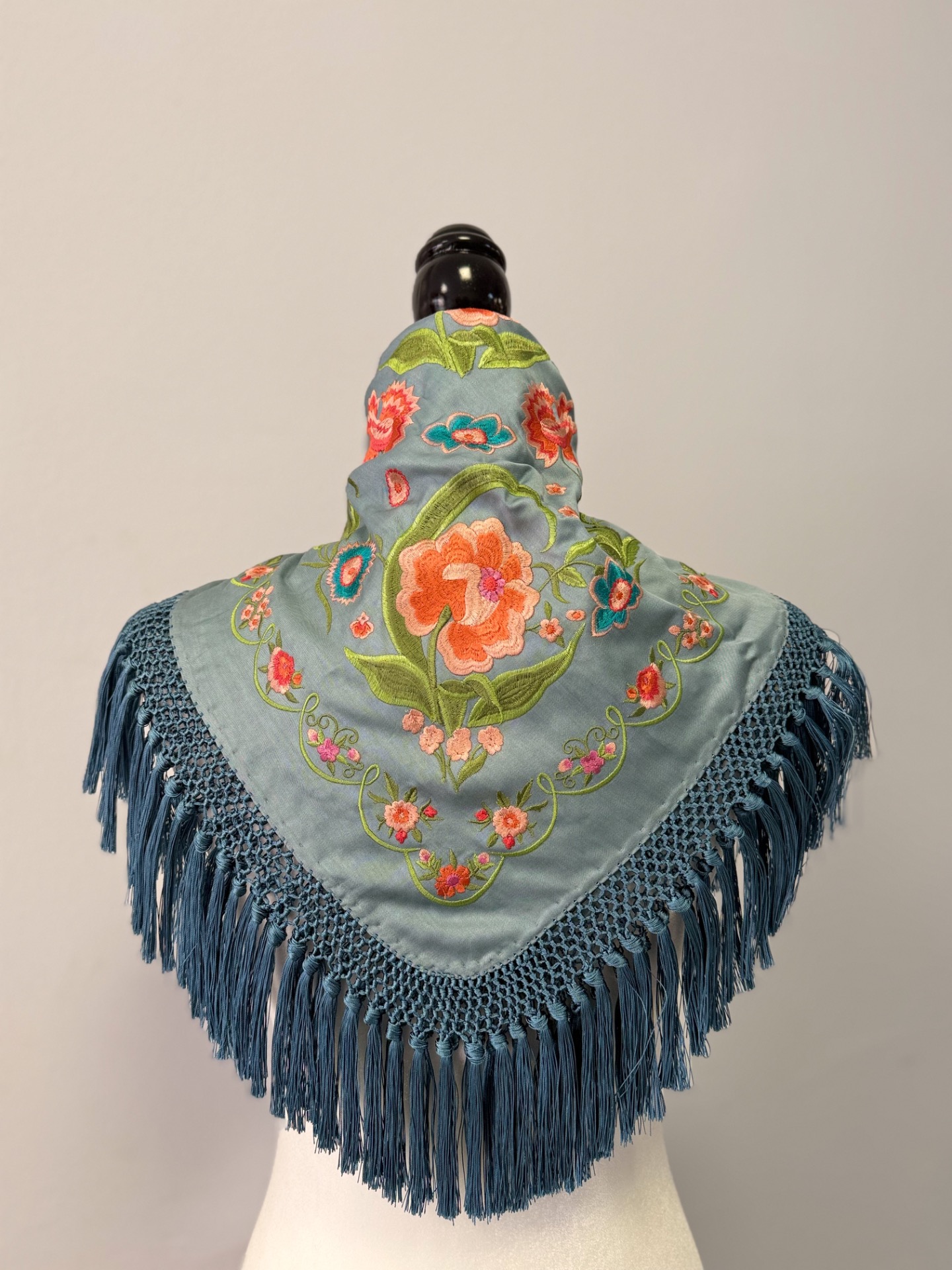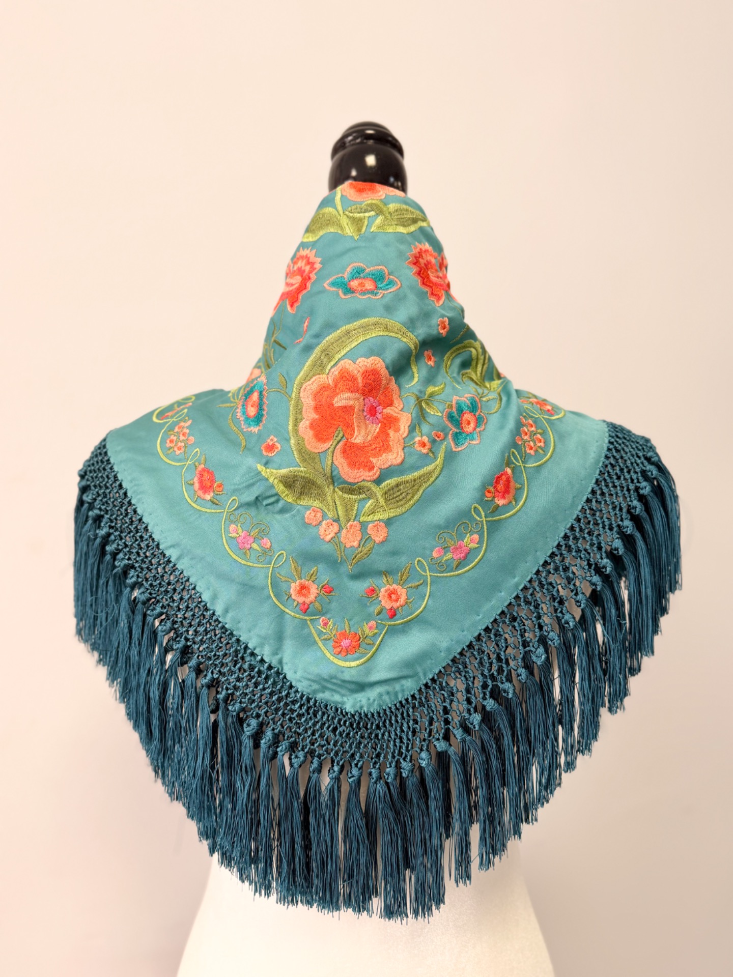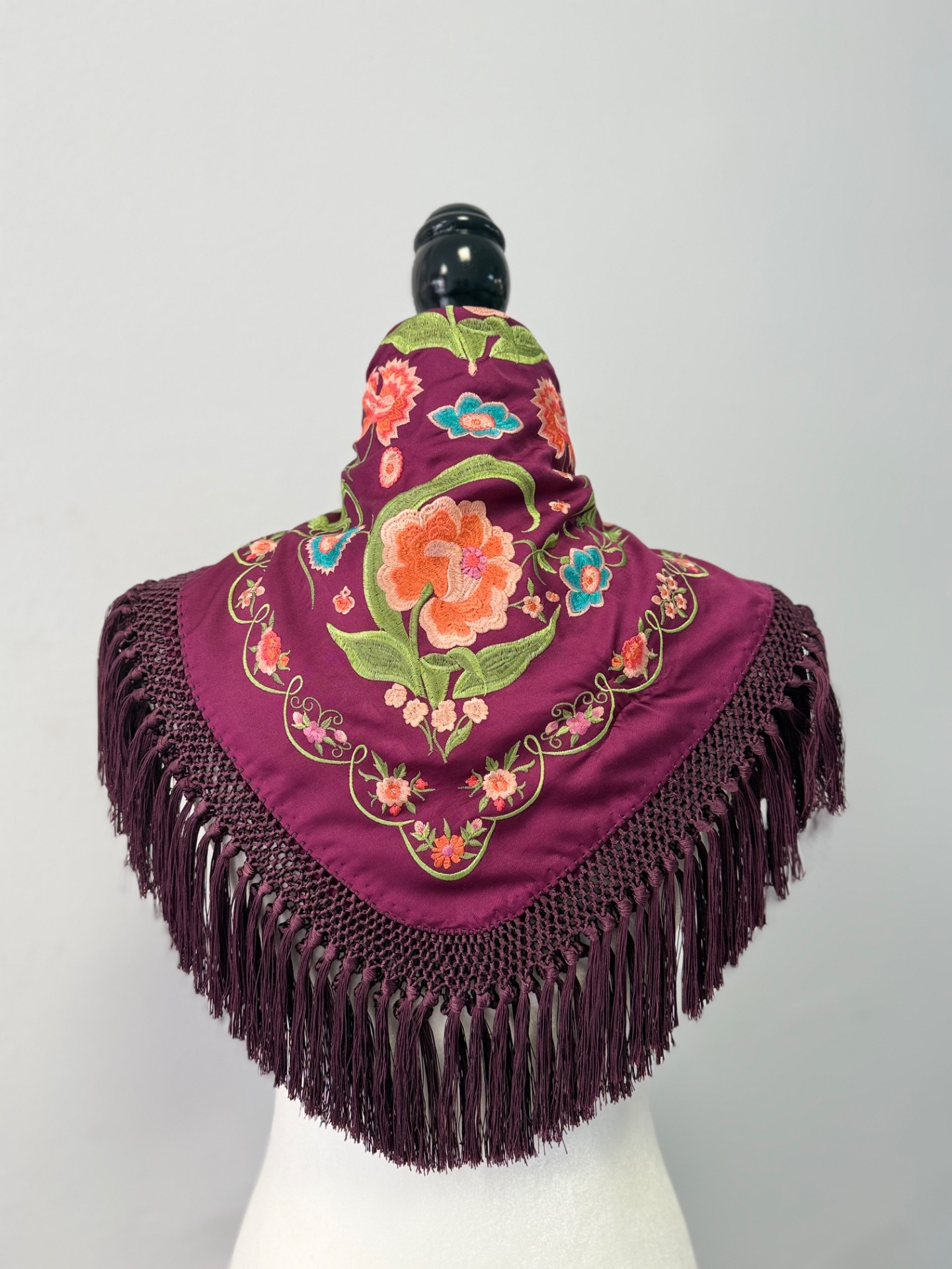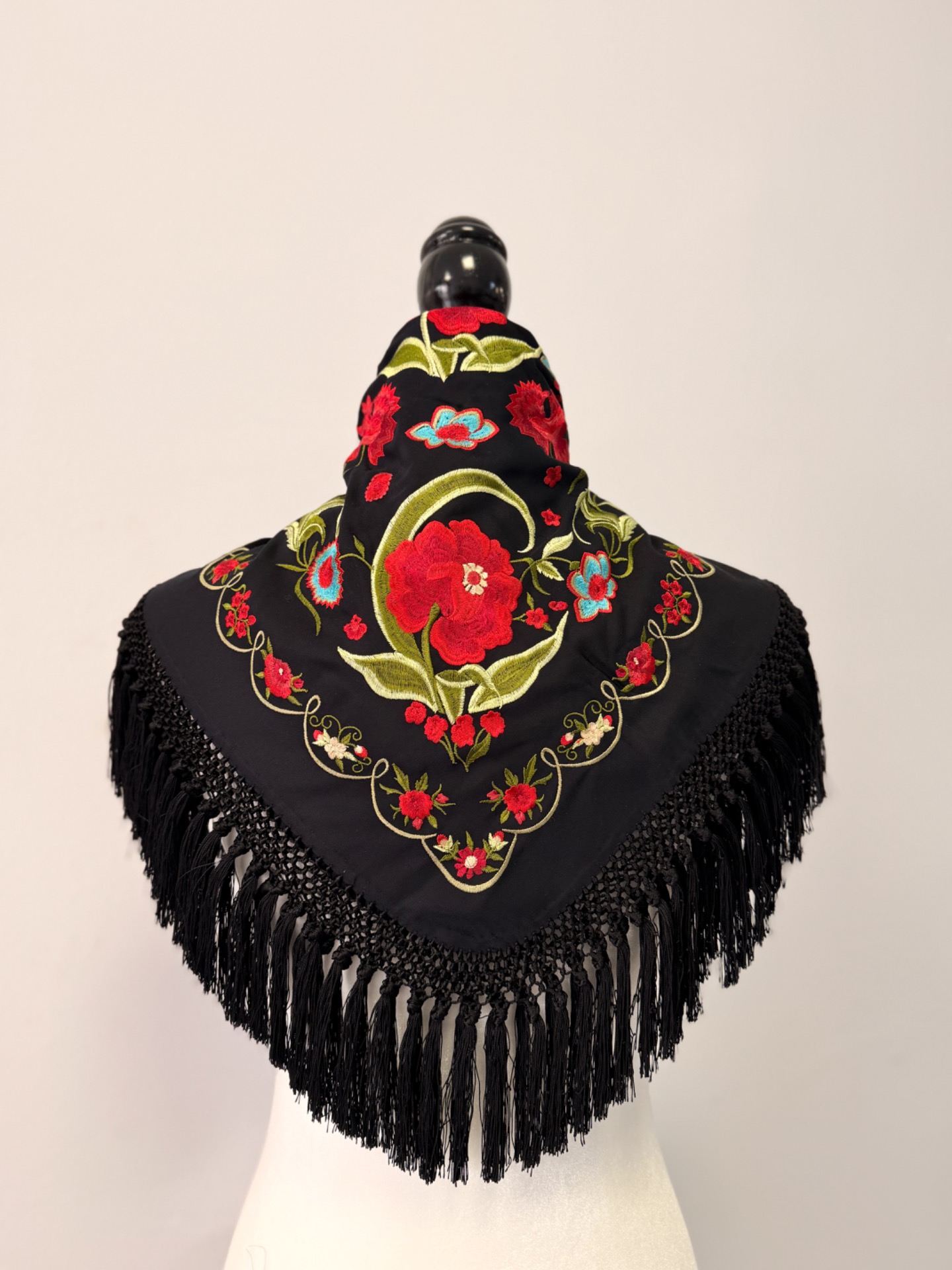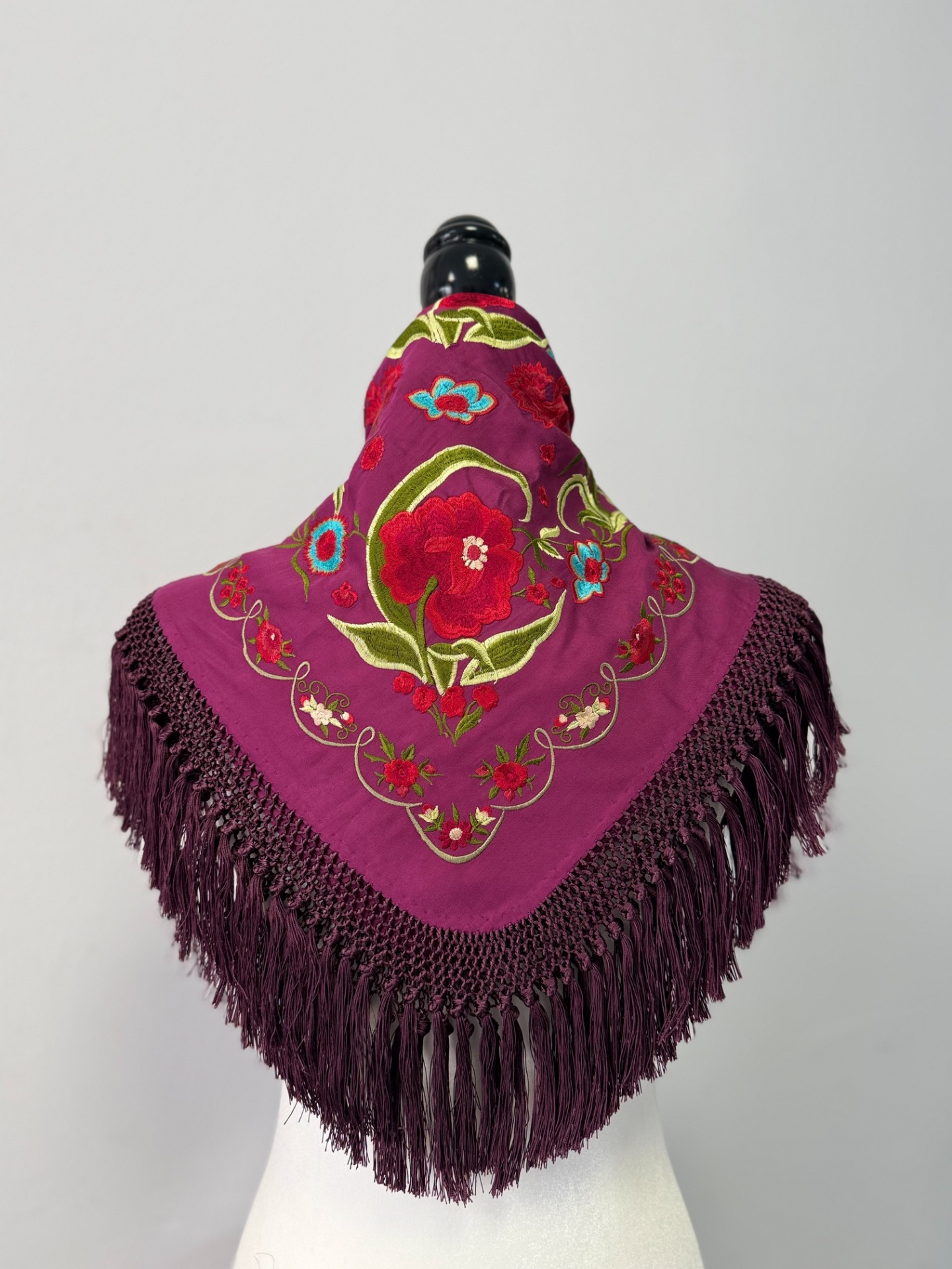 Todos nuestros mantones son diseños exclusivos, bordados en seda y flecados a mano. Cada colección es única.