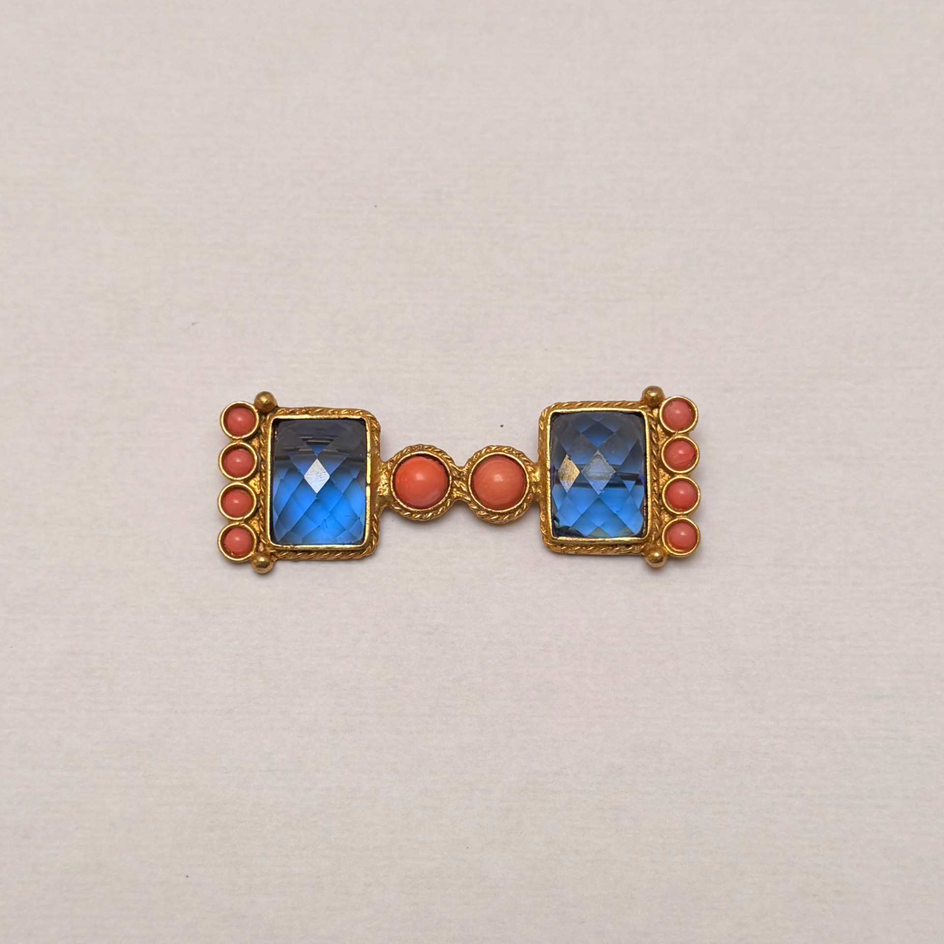 Broche doble cuadrado azul y coral