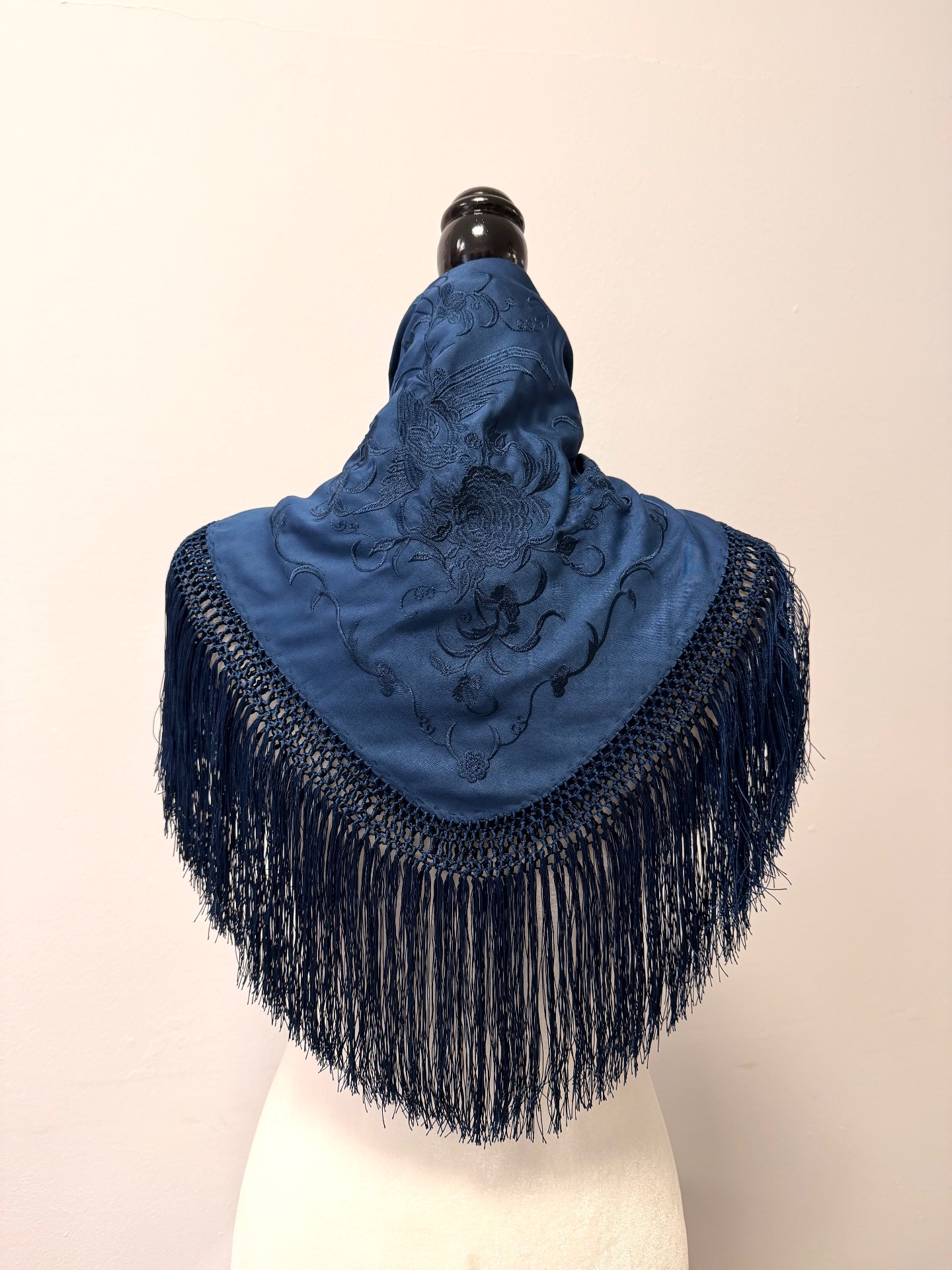 Mantón de seda, bordado en seda. Mide 60x60 sin contar flecos.