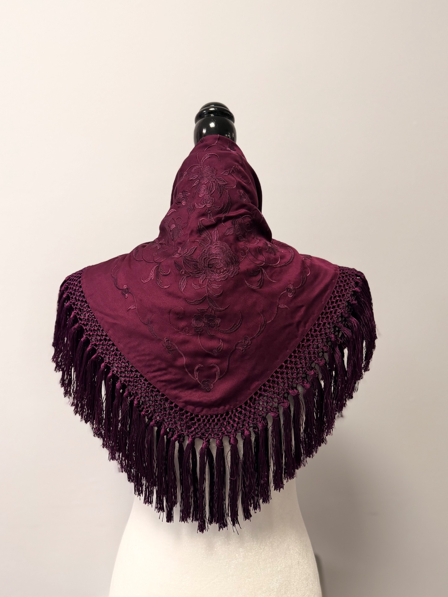 Mantón de seda, bordado en seda. Mide 60x60 sin contar flecos.