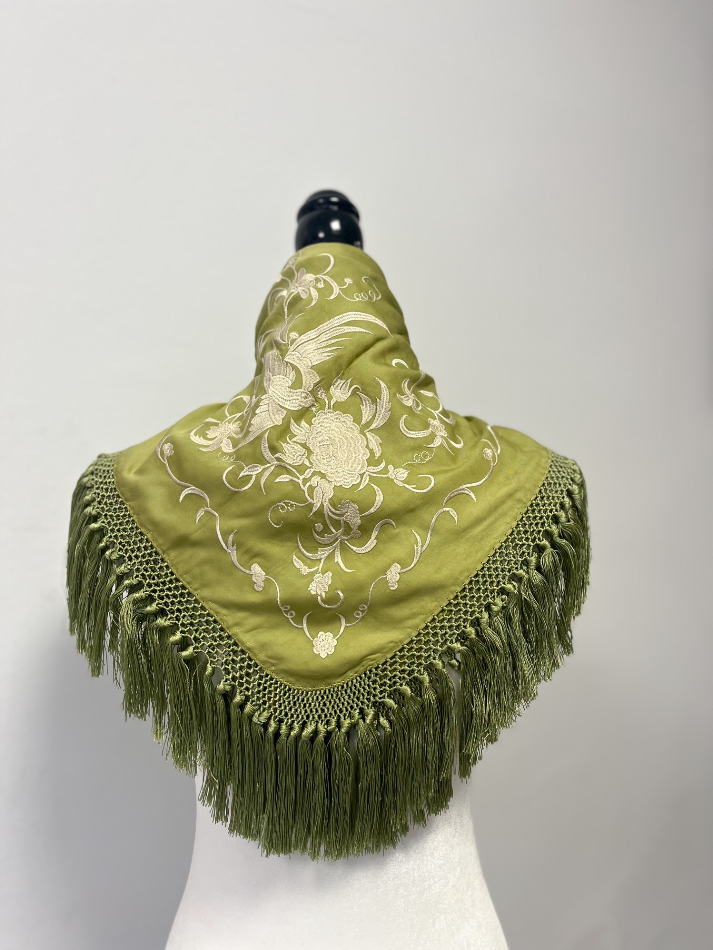 Mantón de seda, bordado en seda. Mide 60x60 sin contar flecos.