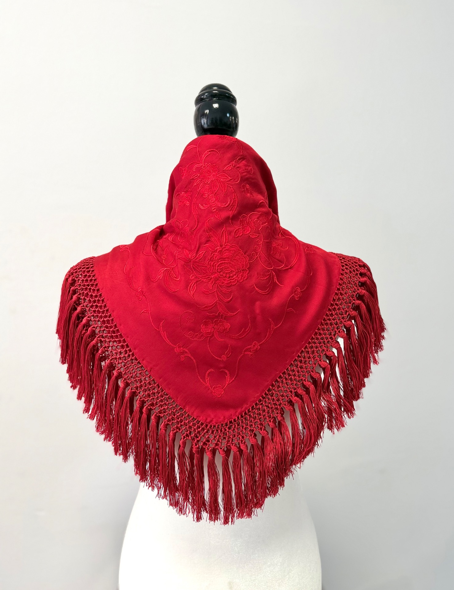 Mantón de seda, bordado en seda. Mide 60x60 sin contar flecos.