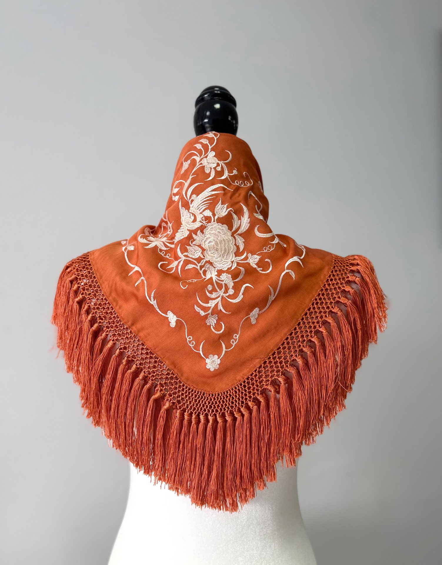 Mantón cetrería teja bordado blanco CUADRADO 60x60
