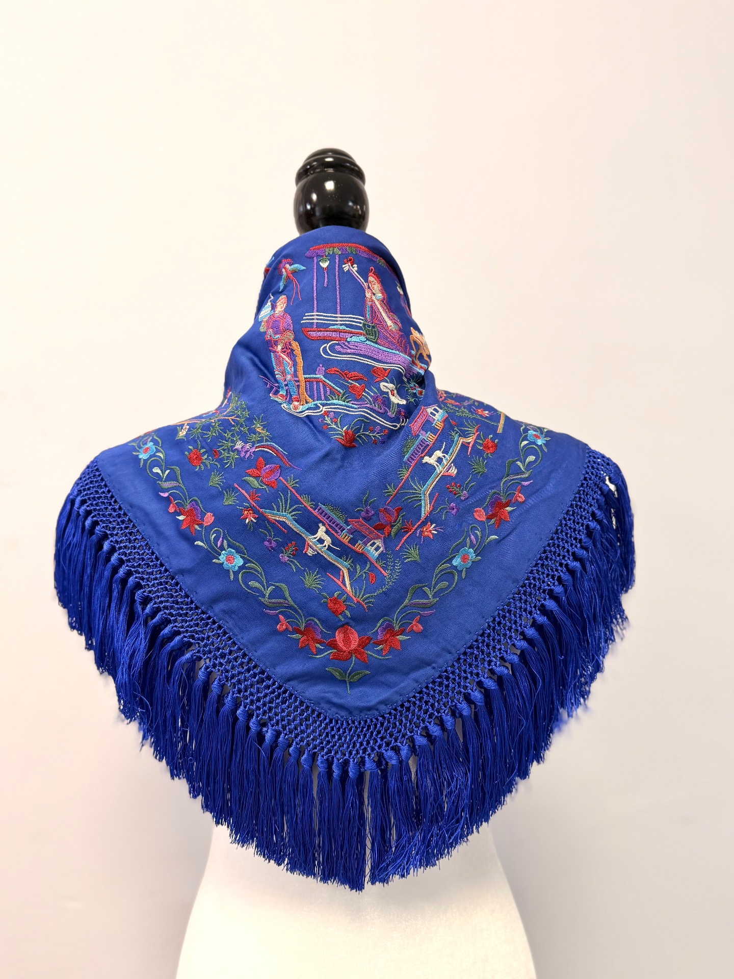 Mantón chinesco azulina bordado colores CUADRADO 60x60