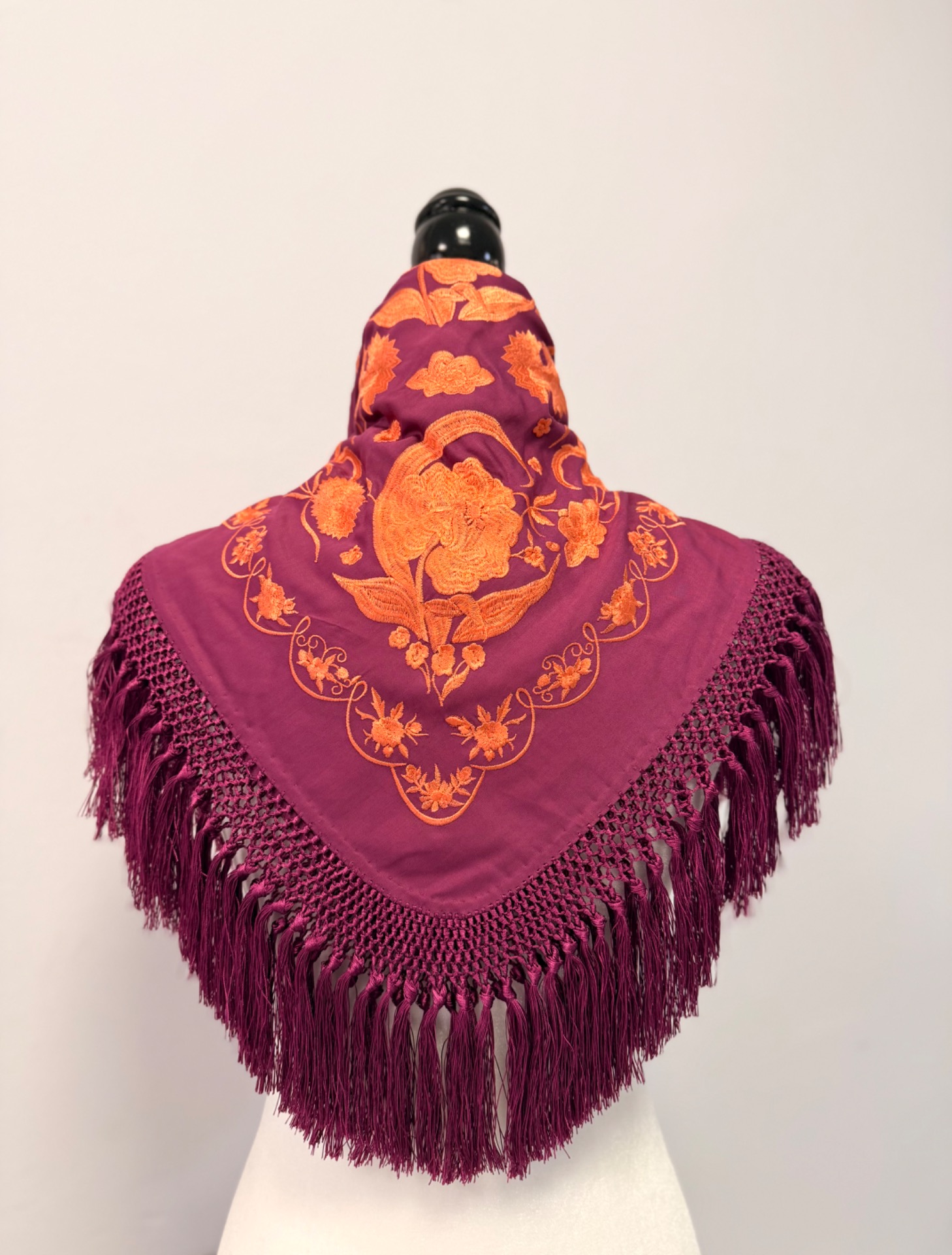 Mantón imperio berenjena bordado teja CUADRADO 60x60
