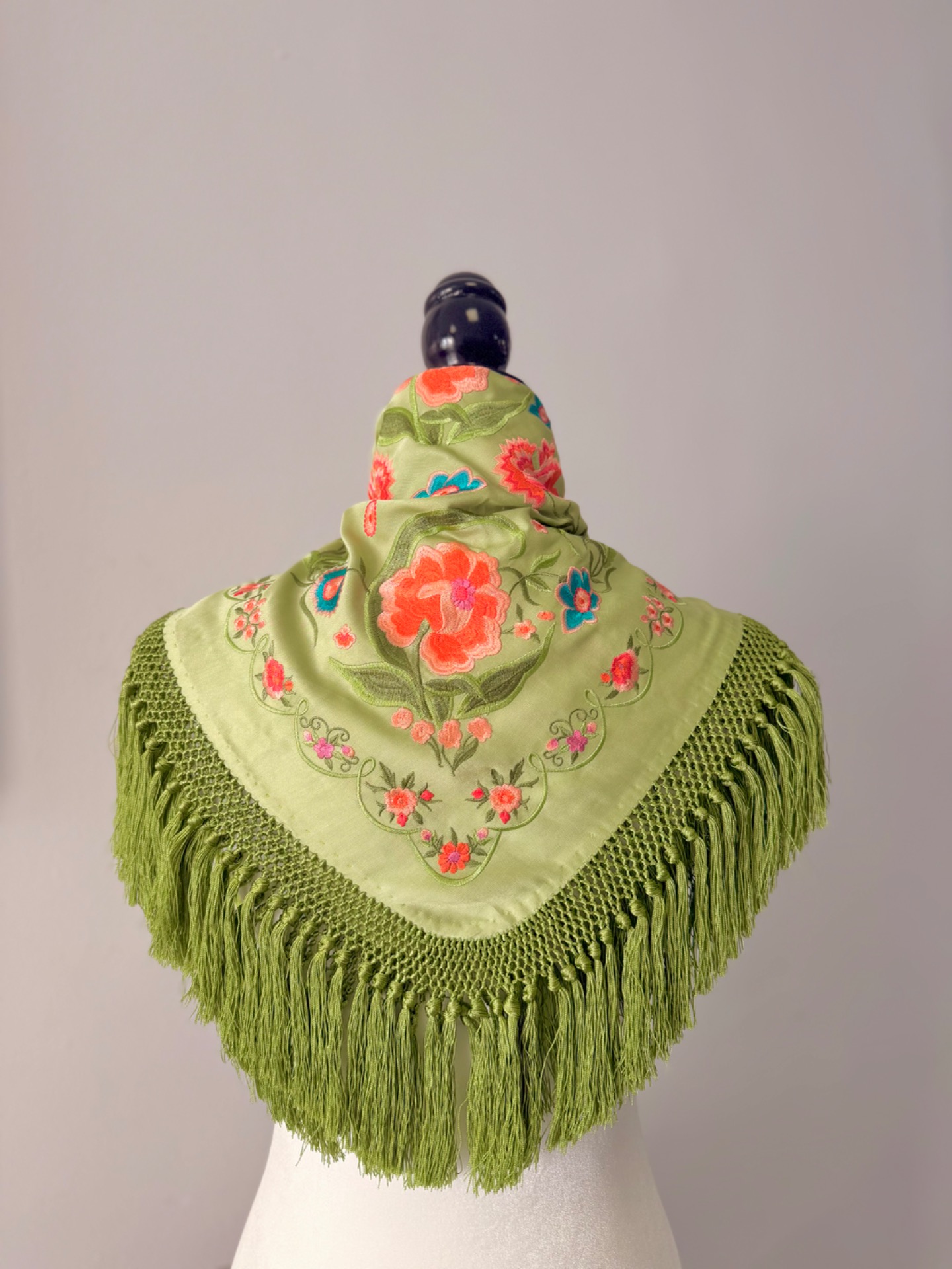 Mantón imperio verde limón bordado coral CUADRADO 60x60
