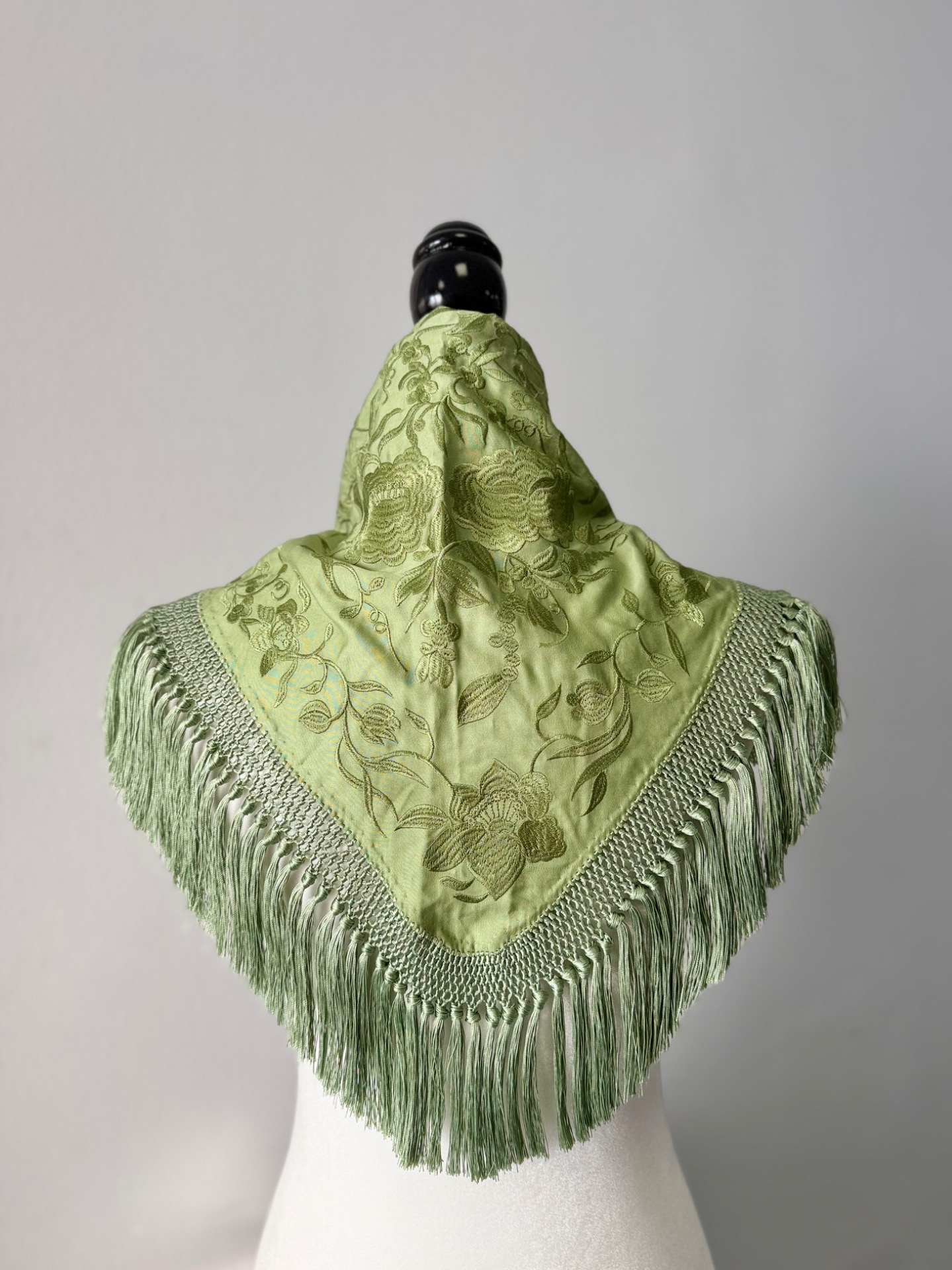 Seda bordado en seda. Diseño exclusivo Mantones Luanda, fabricación propia.