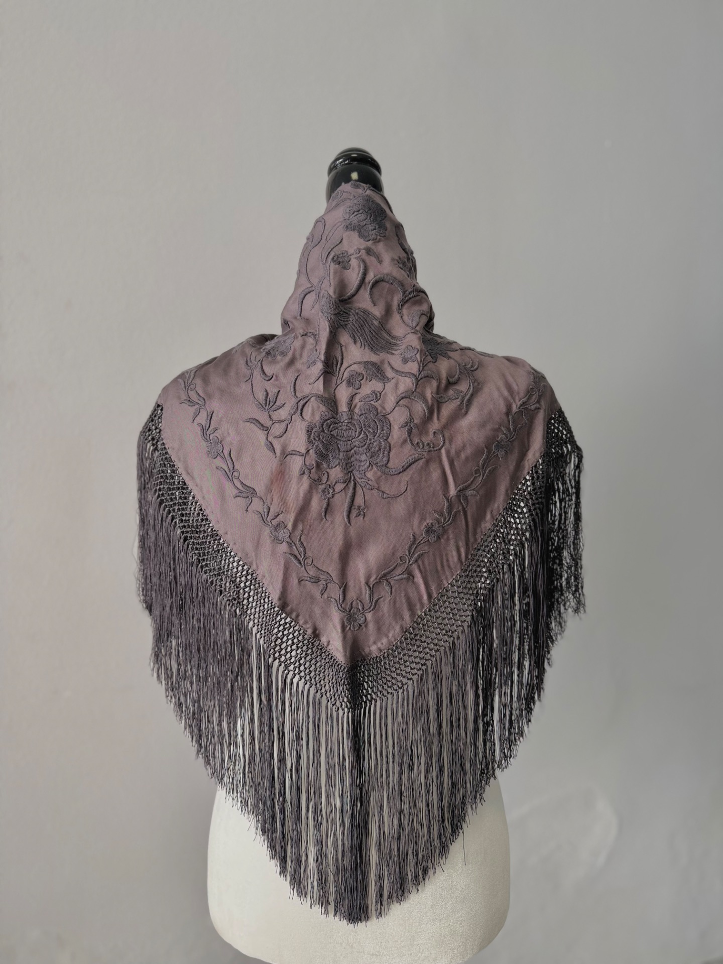 Manton de seda bordado en algodón. Mide 80x110x80. Diseño y produccion propios.