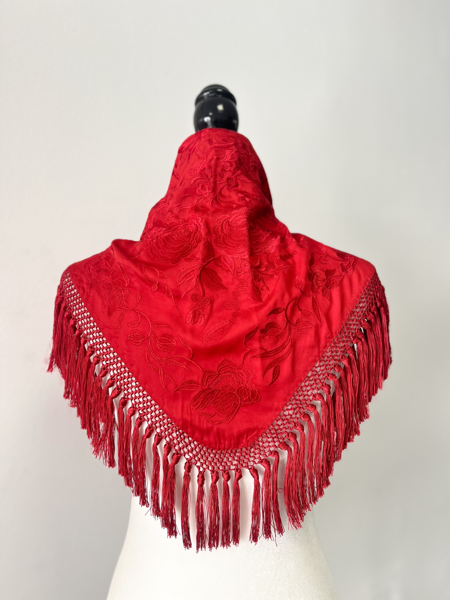 Manton tamaño niña 60x80x60 aproximadamente sin contar flecos.Seda bordado en seda. Diseño exclusivo Mantones Luanda, fabricación propia.