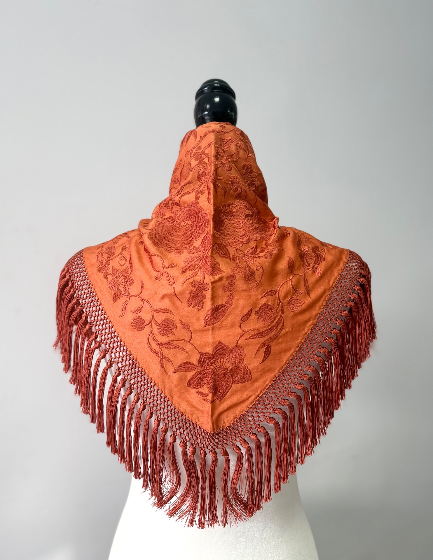 Manton tamaño niña 60x80x60 aproximadamente sin contar flecos.Seda bordado en seda. Diseño exclusivo Mantones Luanda, fabricación propia.