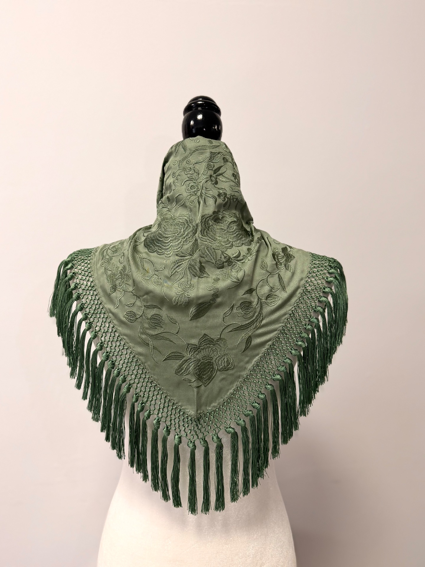 Manton tamaño niña 60x80x60 aproximadamente sin contar flecos.Seda bordado en seda. Diseño exclusivo Mantones Luanda, fabricación propia.