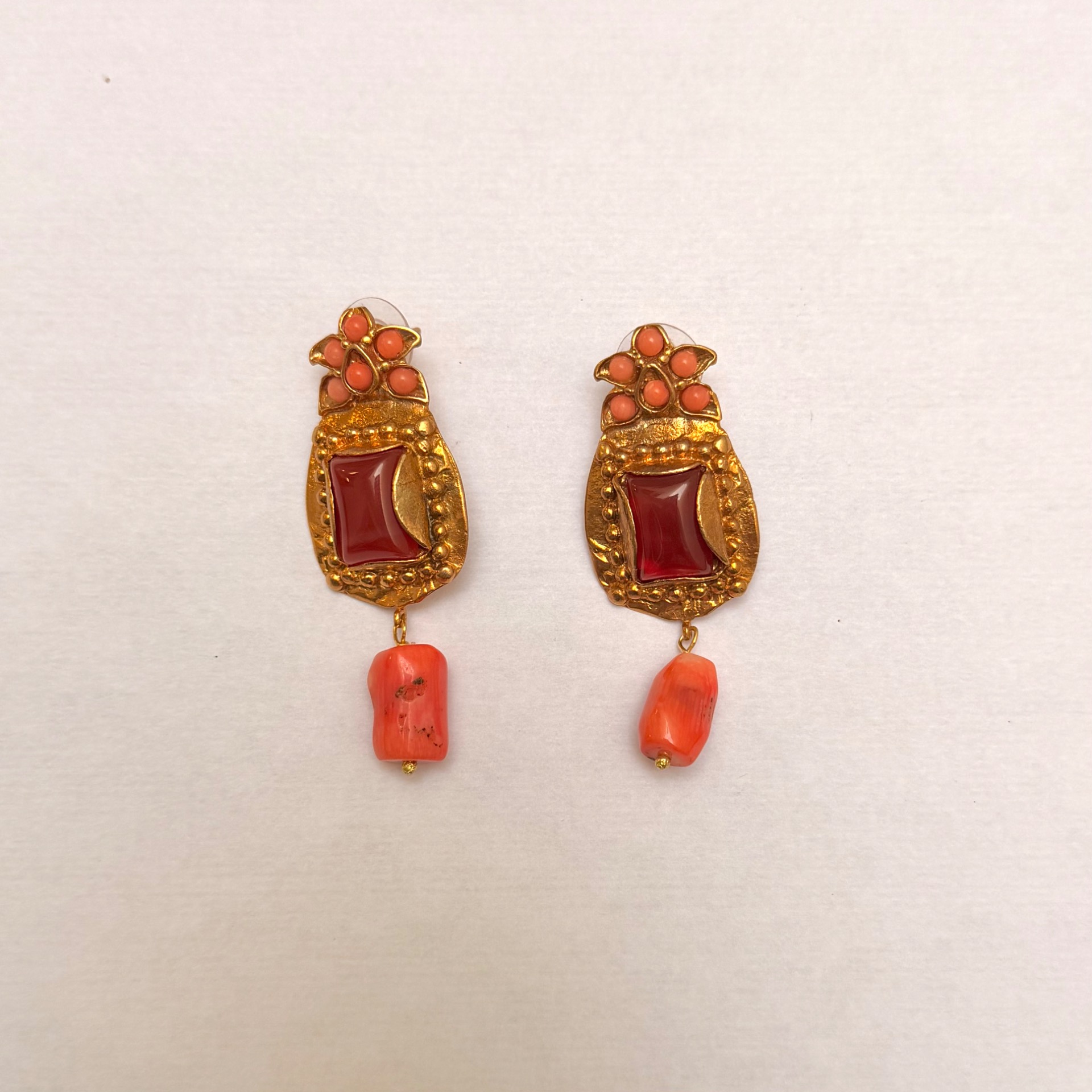 Pendientes floral granate y coral